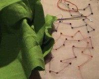 grüner Leinenstoff, grauer Baumwollorganza